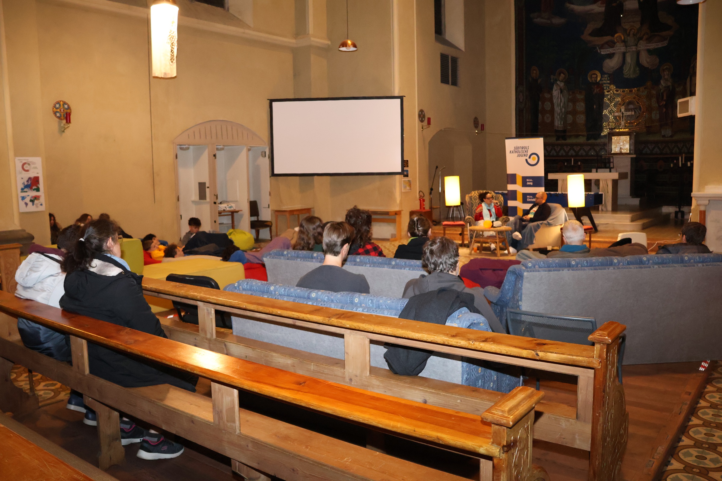 Am Freitag, den 24. Oktober 2025, startete in der Jugendkirche Meran die Aktionsreihe von Südtirols Katholischer Jugend (SKJ) mit dem Titel „Glaubenstalk – Auf an Ratscher über Gott“. Jugendliche und junge Erwachsene nutzten die Gelegenheit, gemeinsam mit Theologin und Referentin Renate Rottensteiner sowie Moderator Daniel Donner über das Thema „Adam und Eva“ zu diskutieren.