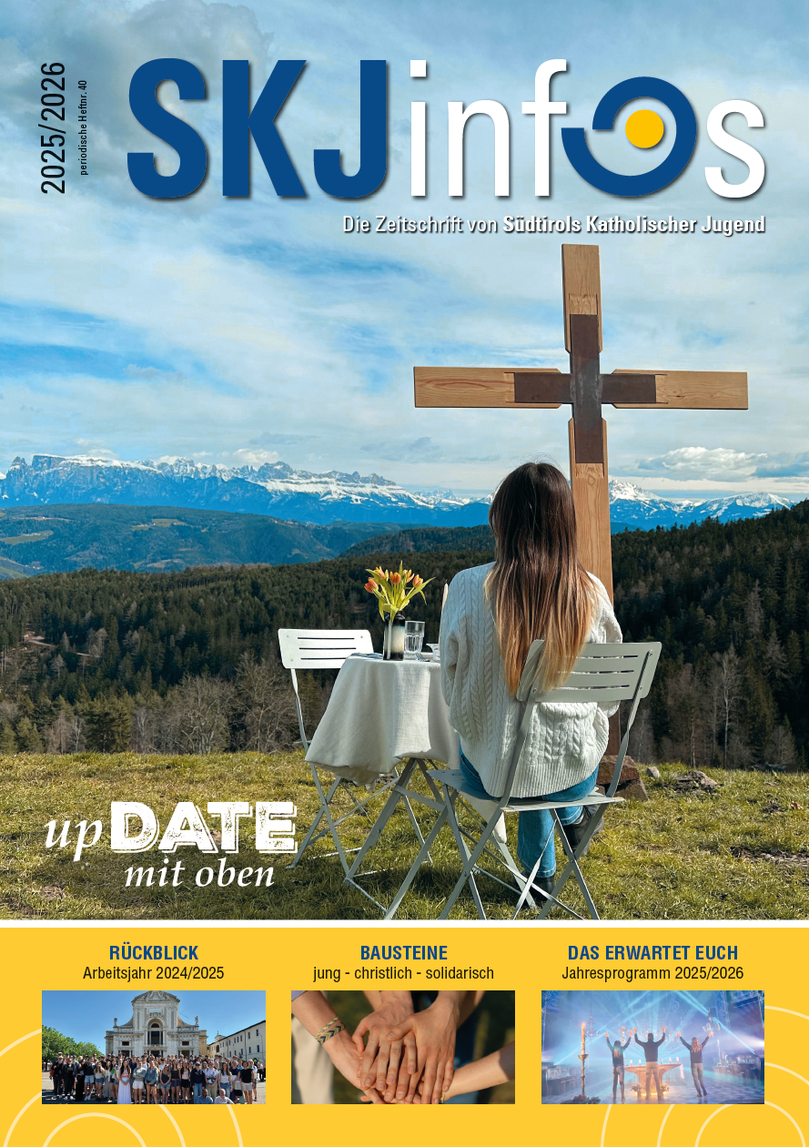Die Printausgabe der SKJinfos ist ebenfalls kostenlos und kann per Mail abonniert werden (info@skj.bz.it). Die letzte Ausgabe könnt ihr außerdem hier unten durchblättern.