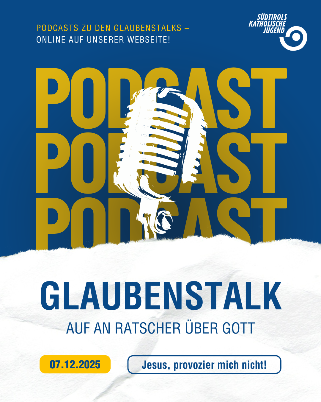 Mit der Aktionsreihe „Glaubenstalk – Auf an Ratscher über Gott“ luden wir Jugendliche und junge Erwachsene ein, in entspannter Atmosphäre über spannende und oft missverstandene Themen der Bibel ins Gespräch zu kommen. In lockerer Atmosphäre konnten die Teilnehmenden sich austauschen, Fragen stellen, ihre Meinung äußern oder einfach zuhören, um zu verstehen, welche Bedeutung die Bibeltexte heute für Alltag, Beziehungen und persönliches Nachdenken haben.