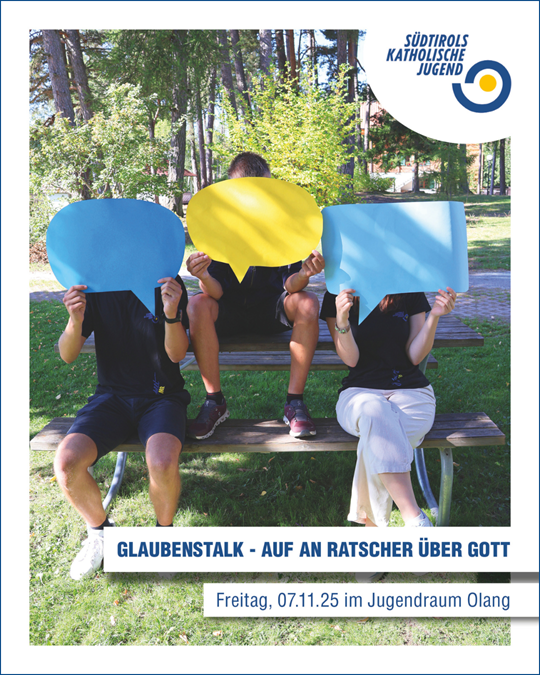 Mit der Aktionsreihe „Glaubenstalk – Auf an Ratscher über Gott“ lädt Südtirols Katholische Jugend (SKJ) Jugendliche und junge Erwachsene ein, in entspannter Atmosphäre über spannende und oft missverstandene Themen der Bibel ins Gespräch zu kommen. Der Abend lädt in lockerer Atmosphäre zum offenen Austausch ein, bei dem die Teilnehmenden Fragen stellen, ihre Meinung äußern oder einfach zuhören können, um zu erkunden, welche Bedeutung die Bibeltexte heute für Alltag, Beziehungen und persönliches Nachdenken haben.